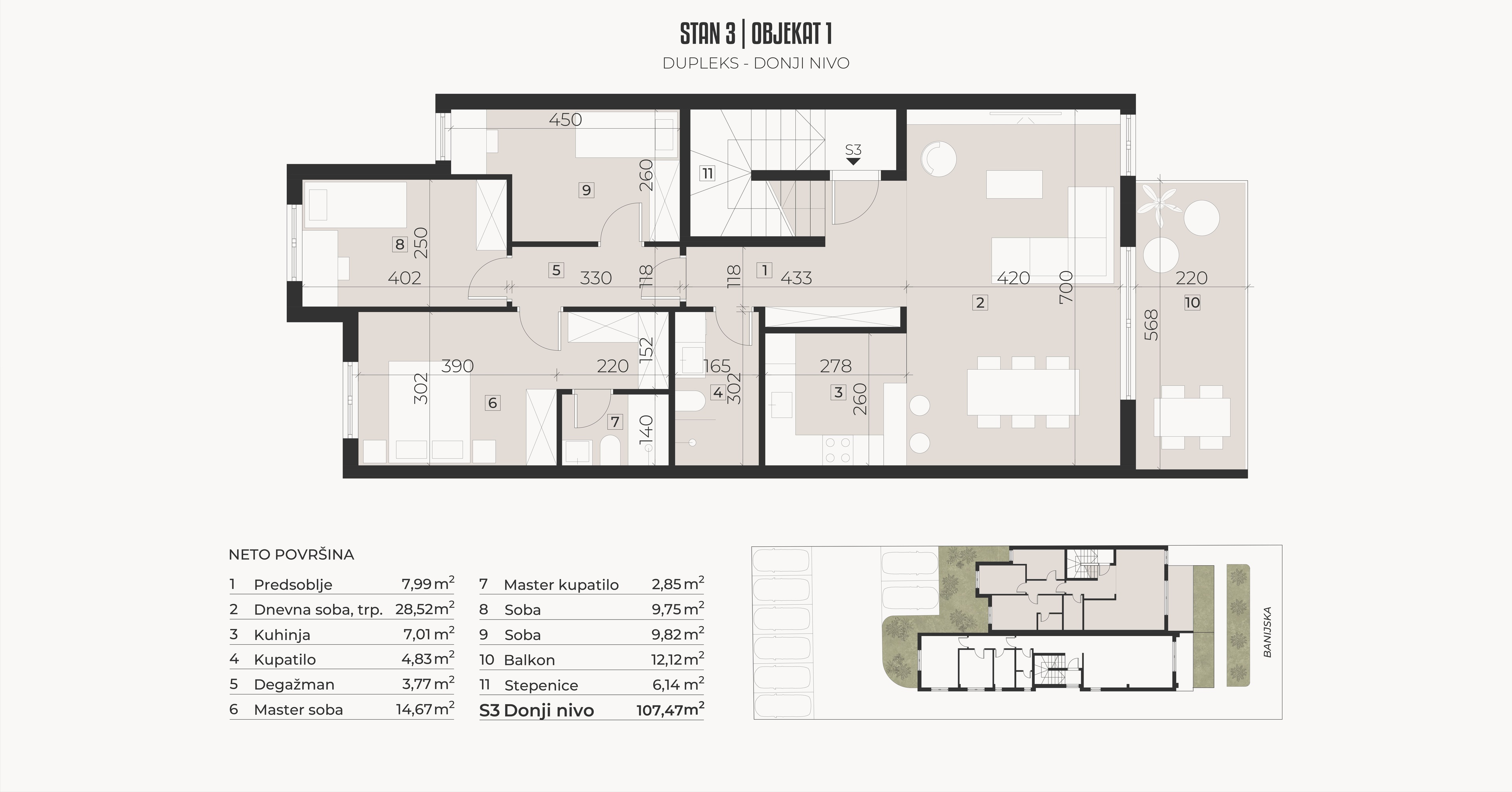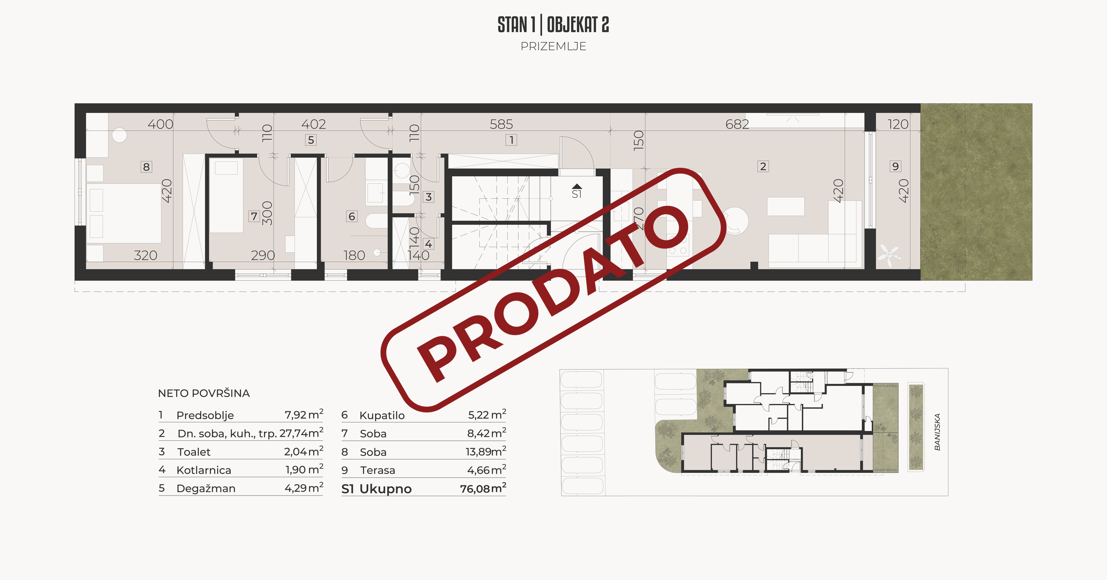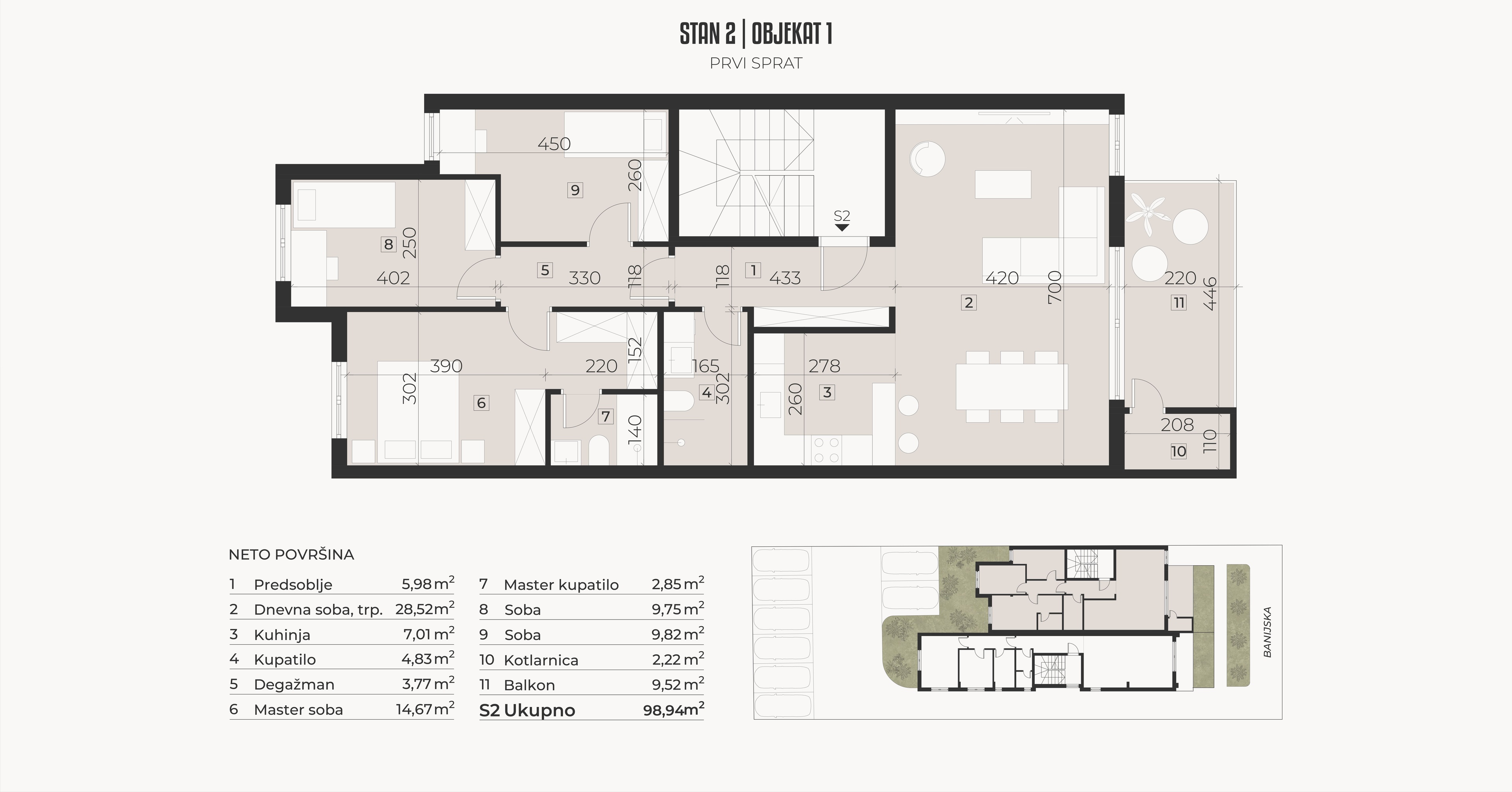 Objekat u svom sastavu ima 6 prostranih stanova, raspoređenih u 2 odvojena ulaza. U dvorištu se nalazi 8 parking mesta namenjenih isključivo stanarima. Građena od kvalitetnih materijala, sa modernim dizajnom i pažnjom na detalje, Vila Milica nudi spoj komfora, estetike i praktičnosti u mirnom okruženju.